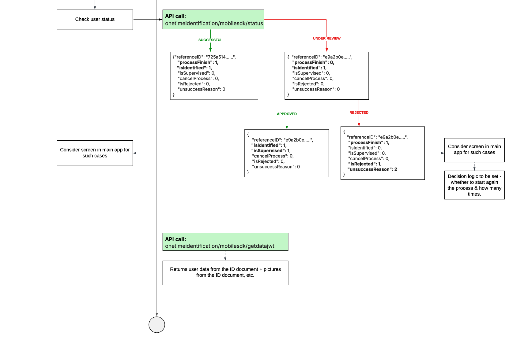 The complete Evrotrust eID ecosystem includes several workflow variations to handle different scenarios and edge cases. The detailed diagrams below show the full range of possible paths, including successful flows, error handling, alternative verification methods, and user decision points. These comprehensive views help developers understand all potential outcomes and implement appropriate handling logic